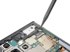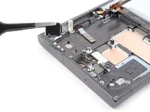 Вставьте плоский конец лопатки между рамкой и разъёмом правой 5G mmWave антенны.