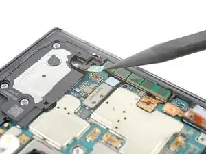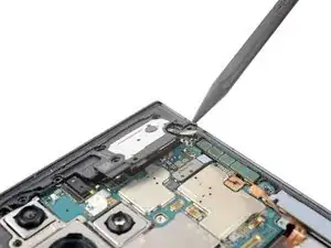 Используйте острый конец лопатки, чтобы поддеть и отсоединить правый контактный разъём 5G mmWave антенны.