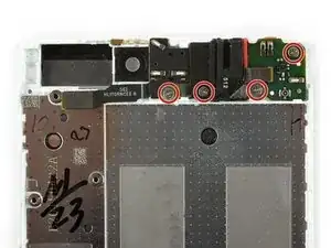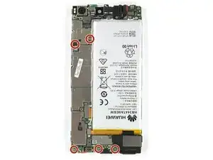 Удалите пять винтов Phillips #00, которые крепят материнскую плату Huawei P8.