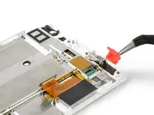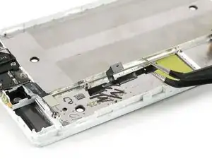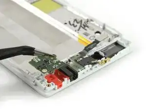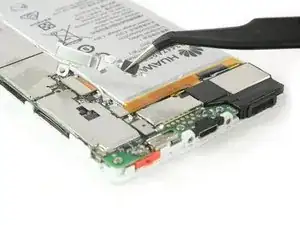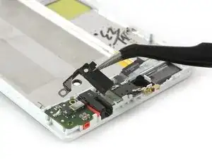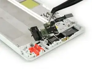С помощью пинцета снимите первую дочернюю плату, которая была подключена к разъему для наушников.