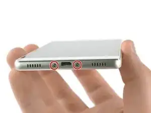 Уберите два винта Torx T2, расположенных внизу рядом с портом Micro USB устройства.