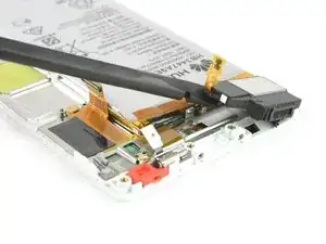 С помощью лопатки отсоедините гибкий кабель разъема для наушников.