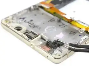 Отключите гибкий кабель дисплея и кабель кнопок питания и громкости.