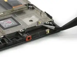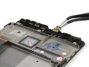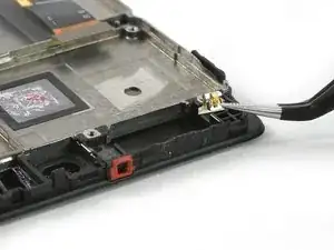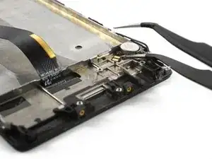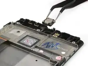 С помощью пинцета освободите шлейф вибромотора. Будьте осторожны, он немного липкий.