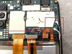 Отключите 2 кабеля: левый — для дисплея, правый соединяет основную плату и дочернюю плату.