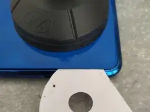 Используйте присоску, чтобы приподнять заднюю крышку от корпуса, и вставьте медиатор или пластиковый инструмент между крышкой и рамкой, чтобы отжать крышку.