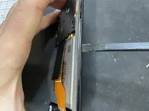Медленно продвигайтесь вдоль всего края, пока крышка не отделится и вы не сможете поднять её. Поднимайте крышку медленно и прижмите датчик отпечатков к раме, чтобы он отделился от крышки и не вырвался.