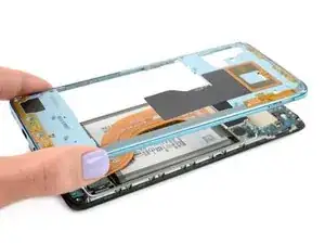 Установите среднюю рамку на заднюю часть телефона и защёлкните её.