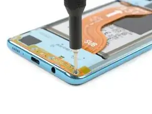 Перед вскрытием телефона рекомендуется разрядить аккумулятор Samsung Galaxy A51 до уровня ниже 25%. В случае повреждения аккумулятора при ремонте риск возгорания или взрыва будет ниже, если ёмкость аккумулятора снижена.