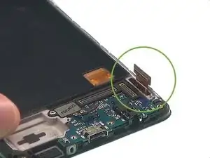 Подключите кабель дисплея к его коннектору, расположенному рядом с разъёмом для наушников.