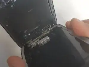 Чтобы размягчить клей, соединяющий дисплей с шасси, нагрейте переднюю панель феном на несколько секунд.