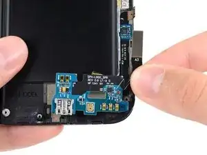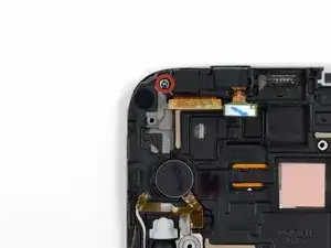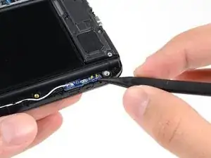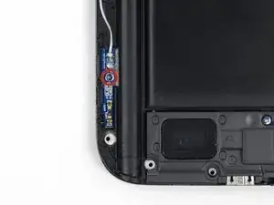 Выкрутите винт Phillips #00 длиной 3 мм, крепящий сборку разъёма для наушников к сборке дисплея.