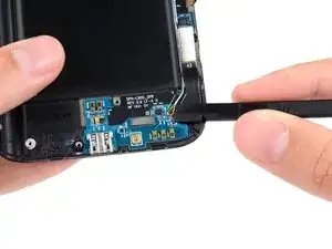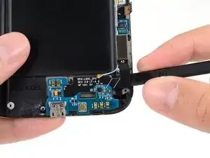Используйте плоский конец лопатки, чтобы отключить разъём антенного кабеля от платы USB.