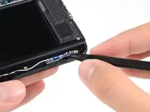 Выкрутите винт Phillips #00 длиной 3 мм, крепящий антенну к сборке дисплея.