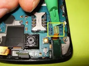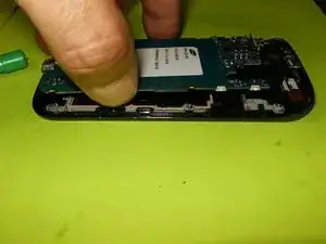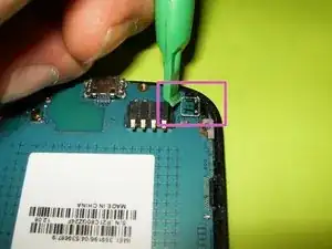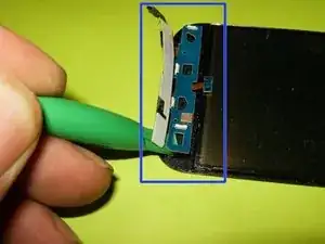 Плата кнопок приклеена к нижней части ЖК-дисплея. Снимайте её медленно и аккуратно. Инструмент для вскрытия упростит задачу.