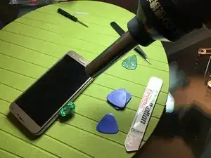 Если вам нужно только удалить дисплей, чтобы получить доступ к внутренним частям телефона и выполнить другие ремонты, будьте осторожны с центральным клеем и аккуратно его нагрейте.