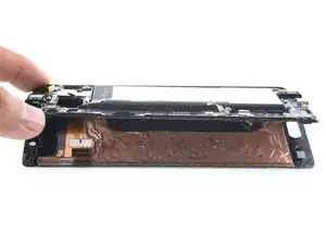 Не снимайте дисплей в этот момент. Шлейф дисплея всё ещё пропущен через рамку дисплея.