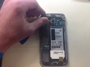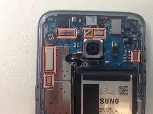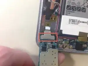 Осторожно приподнимите логическую плату сверху телефона в сторону аккумулятора. НЕ удаляйте логическую плату полностью пока.