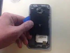 Когда вы поднимете достаточно крышки, чтобы вставить медиатор для гитары, вставьте его под неё. Проведите медиатором по всему краю телефона, чтобы разорвать клей.