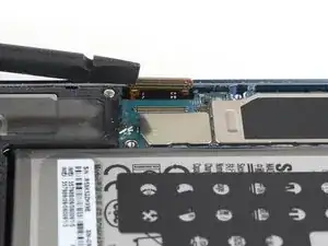 Воспользуйтесь плоским концом лопатки, чтобы отсоединить шлейф дисплея.