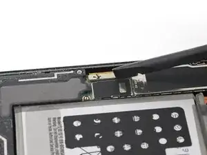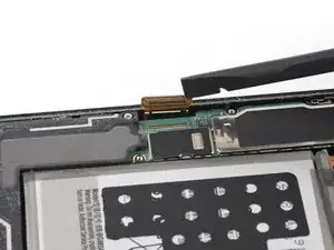 Краем лопатки подденьте и отсоедините гибкий кабель датчика отпечатков пальцев.