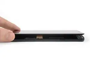 Переместите его вокруг нижнего правого угла и разрежьте оставшийся клей на нижней кромке дисплея.