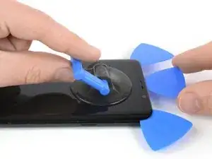 Если заднее стекло телефона треснуло, присоска может не зафиксироваться. Попробуйте поднять крышку с помощью прочной ленты или приклейте присоску суперклеем и дайте клею затвердеть, чтобы продолжить работу.