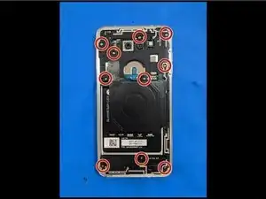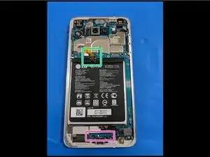 Продолжайте отсоединять защёлки, перемещая лопатку вверх по левой стороне телефона, вокруг верхнего края и вниз по правой стороне.