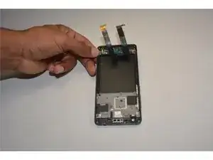 После снятия задней крышки, аккумулятора и материнской платы переверните телефон, чтобы приступить к снятию ЖК-дисплея.