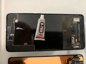 Нанесите клей по краю дисплея.