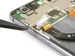 Пинцетом снимите пластиковую крышку шлейфа кнопок громкости и питания.