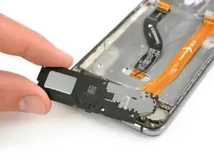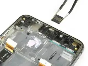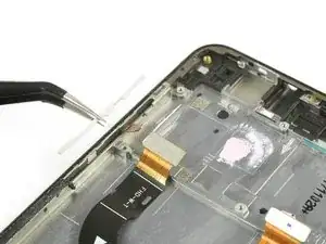 Хотя разъём наушников не приклеен к средней рамке, он немного зажат в своём креплении. Будьте осторожны, чтобы не повредить его при снятии.