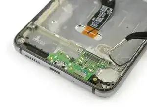 Снимите плату зарядки с помощью пинцета.