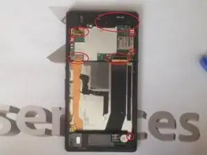 Отвинтите 4 винта и отсоедините 3 гибких кабеля, чтобы освободить материнскую плату.