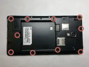 Удалите все 10 винтов Phillips длиной 4,5 мм, которые крепят заднюю рамку к корпусу телефона.