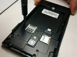 Извлеките аккумулятор, подняв его пальцем или пластиковым инструментом для взлома.