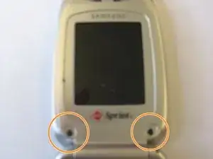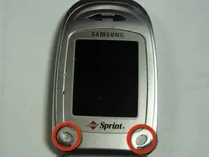 Верните два винта, которые были удалены на шаге 8, чтобы зафиксировать верхнюю половину телефона.