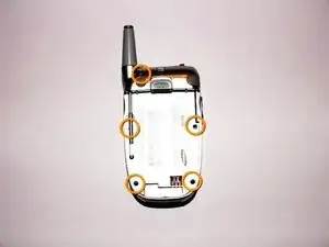 Вкрутите пять винтов, которые были удалены на шаге 3, чтобы закрепить заднюю крышку телефона.