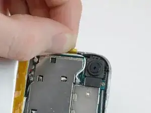 Аналогичным образом просуньте лопатку под плату логики там, где была камера. Опять же, пока не поднимайте слишком высоко, так как снизу платы логики всё ещё подключены четыре разъёма.