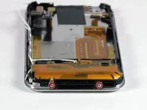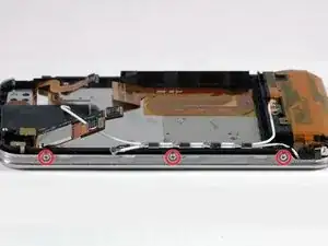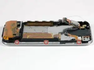 Удалите три винта Phillips #00, крепящие переднюю рамку к iPhone.