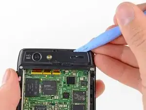 Вставьте пластиковый инструмент между задним корпусом и сборкой материнской платы.