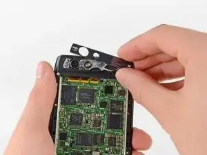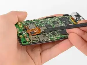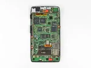 Снимите три винта T3 Torx длиной 2.5 мм, фиксирующих металлический каркас к материнской плате.