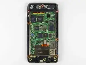 Снимите шесть винтов, крепящих задний корпус к остальной части телефона: