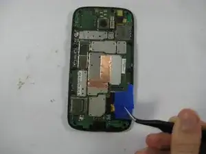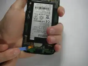 Аккумулятор приклеен, поэтому придётся немного поддеть его. Работайте медленно и аккуратно, пока он не отойдёт.