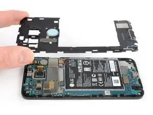 Осторожно потяните материнскую плату к нижнему краю, чтобы освободить её из пластикового зажима рядом с основной камерой.