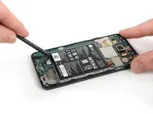 Используйте пинцет, чтобы поддеть и снять моторчик вибрации.