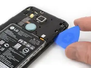 Продолжайте проводить медиатором по всем сторонам телефона, чтобы освободить все защёлки, удерживающие заднюю панель.