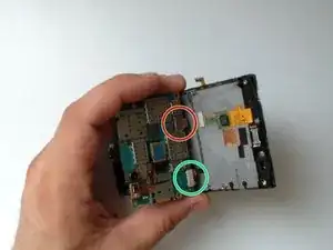 Отключите гибкий кабель кнопок громкости, питания и камеры.
