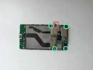 Отключите антенный кабель от основной платы и от платы разъёма зарядки и снимите его.
