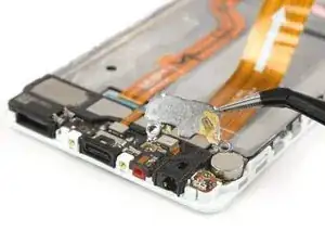 Аккуратно снимите металлический кронштейн. Разъём для наушников может оставаться приклеенным к нему.